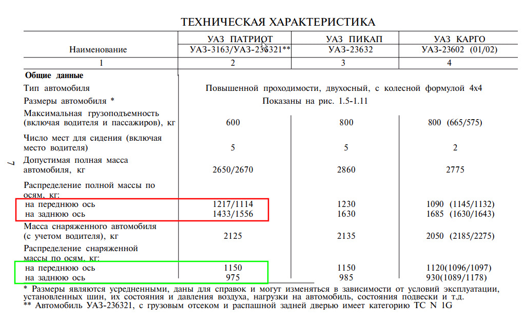 | Патриот | 2.7 MT | 225/75 R16 | 2 | 2.4 | 2.2 | 2.2 | 1.9 | 2.3 | 2.1 | 2.1 |